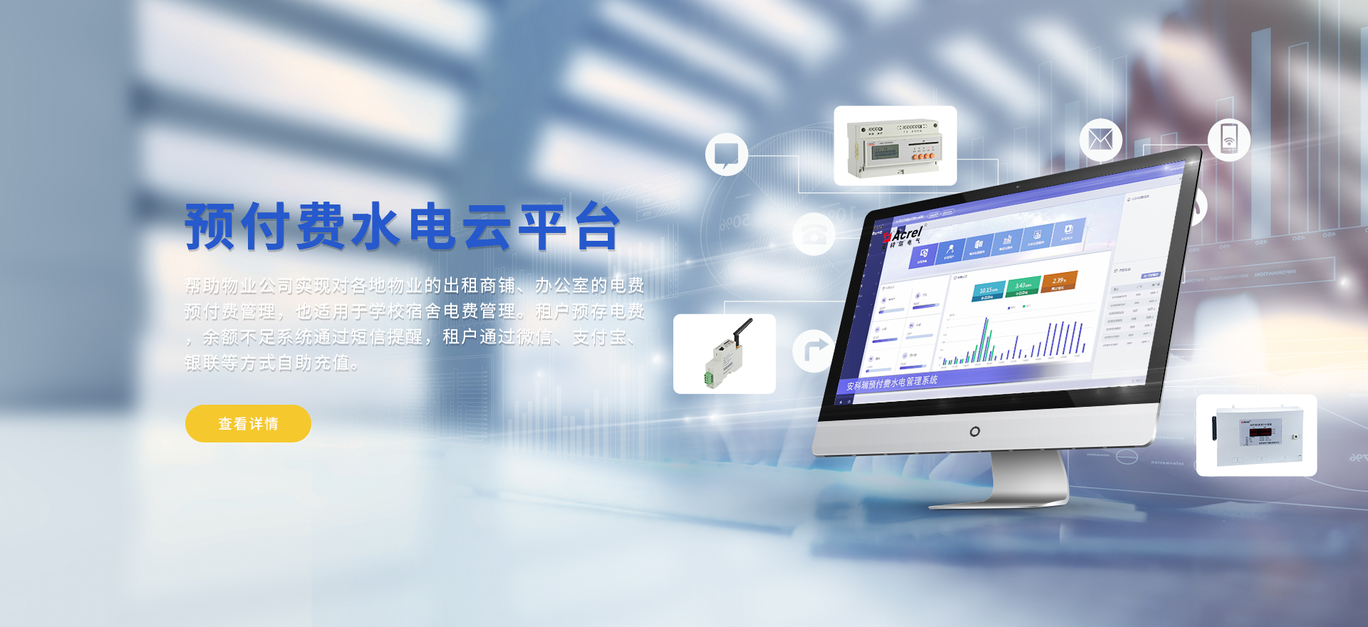 安科瑞提供的解決方案包括Acrel-EIoT能源物聯網云平臺變電所運維云平臺、安全用電管理云平臺、環保用電監管云平臺智慧消防云平臺、能源管理云平臺、工業企業能源管控平臺、遠程預付費云平臺餐飲油煙監管云平臺、電動汽車/電瓶車充電樁收費管理云平臺、電力監控/無線測溫系統、電能質量治理系統、電氣火災監控系統消防設備電源監控系統、防火門監控系統、應急照明和疏散指示系統、智能照明控制系統、醫用隔離電源絕緣監測系統等,幫助用戶實現能源智能化、可視化、精細化管理,提高用能效率和用能安全,為企業節能降耗和實現能源數字化建設提供數據服務。